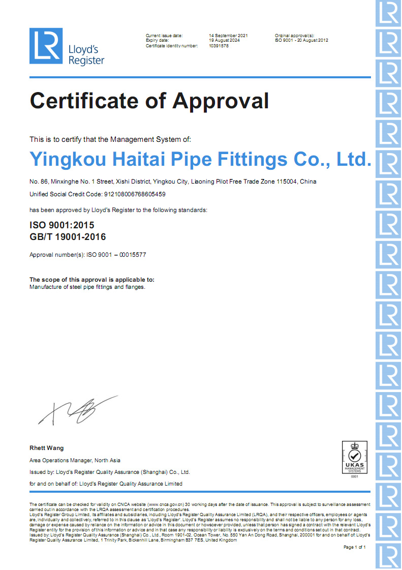 營口海泰金屬管業有限公司成立于2001年,是專業生產管道配件的制造經營企業。公司占地面積兩萬五千平方米,坐落于中國遼寧省港口城市營口。營口一市兩港(營口港、鲅魚圈港),東臨大連港四季通航,陸路運輸四通八達交通便利。